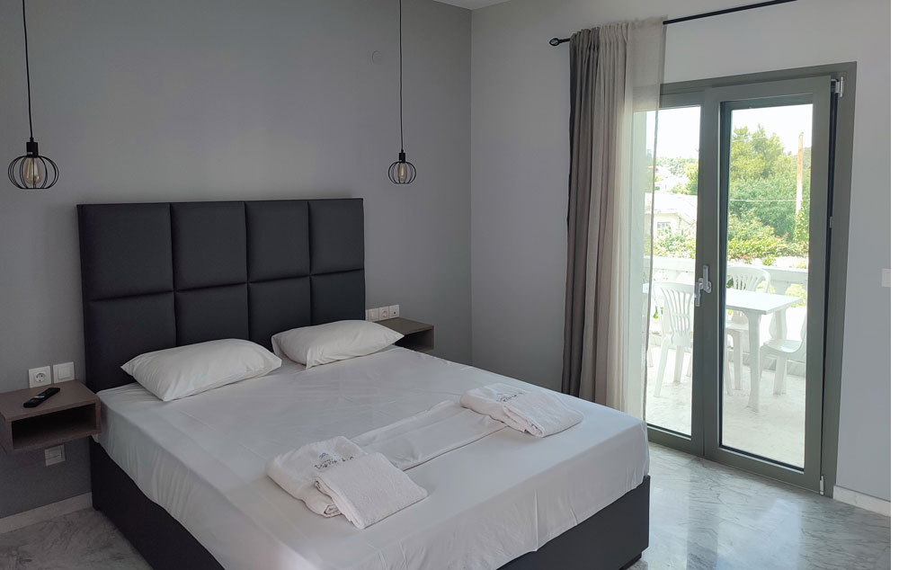 Smešten je na oko 20 metara od plaže, u mestu Nea Kalikratia, na Halkidikiju, i pruža udoban smeštaj za parove i porodice, sa lepim pogledom na more.