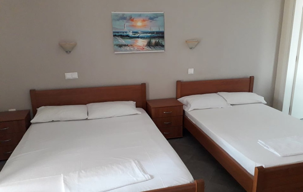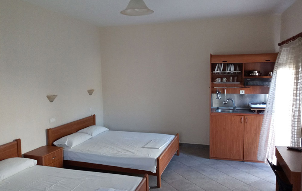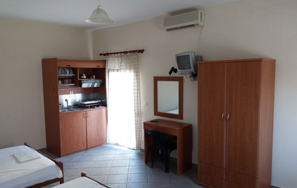 Opis:  Poseduje dvokrevetne, trokrevetne i četvorokrevetne studije, koji se nalaze na visokom prizemlju ili prvom spratu. Svaka od smeštajnih jedinica ima opremljen kuhinjski deo, kupatilo/wc, terasu, TV, WiFi internet i klima uređaj (uz doplatu na licu mesta od 6€ dnevno).