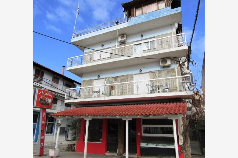 Vila Zorbas se nalazi u centralnom delu Nea Flogite, na samoj plaži. U ponudi ovog objekta su dvokrevetni studiji (pojedini sa mogućnošću dodavanja pomoćnog kreveta) i četvorokrevetni apartmani. Sve smeštajne jedinice su na prvom spratu. Studiji sa direktnim pogledom na more su cenovno izdvojeni i imaju oznaku SV dok ostatak studija i apartmana ima delimičan (loš) bočni pogled na more. Pored toga studiji sa manjom terasom, najbliži zidu susedne kuće su označeni kao economy. Svaka smeštajna jedinica poseduje osnovno opremljenu kuhinju, kupatilo, terasu, TV i klima uređaj čije je korišćenje uključeno u cenu najma apartmana.