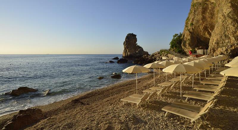 Hotel ima malu prelepu privatnu plažu do koje se dolazi liftom, gde su po sobi, 2 ležaljke i suncobran uključeni u cenu.