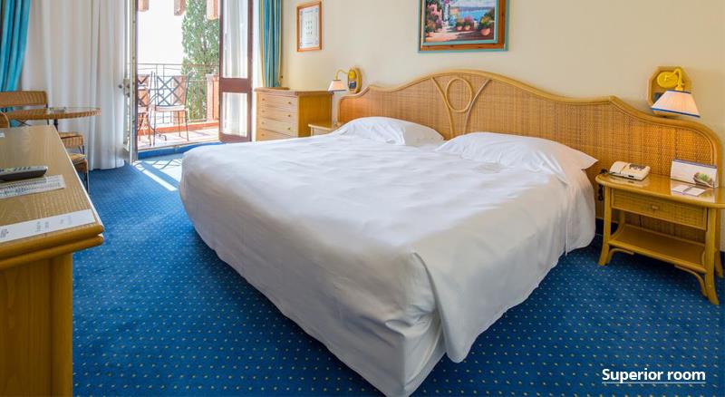 Hotel poseduje 190 soba. U našoj ponudi su superior sobe sa pogledom na baštu I deluxe sobe sa pogledom na more. Svaka soba poseduje poseduje kupatilo (tuš/WC), fen, TV, telefon, mini bar, klima uređaj, besplatan internet, balkon. Sobe su po strukturi dvokrevetne (poseduju francuski ležaj ili 2 odvojena kreveta) dok su svi ostali ležajevi u sobi pomoćni (za dete do 12 godina ili treću odraslu osobu). Jednokrevetna soba je isključivo za 1 osobu, 1 standardni ležaj. Krevetac za bebe je besplatan.