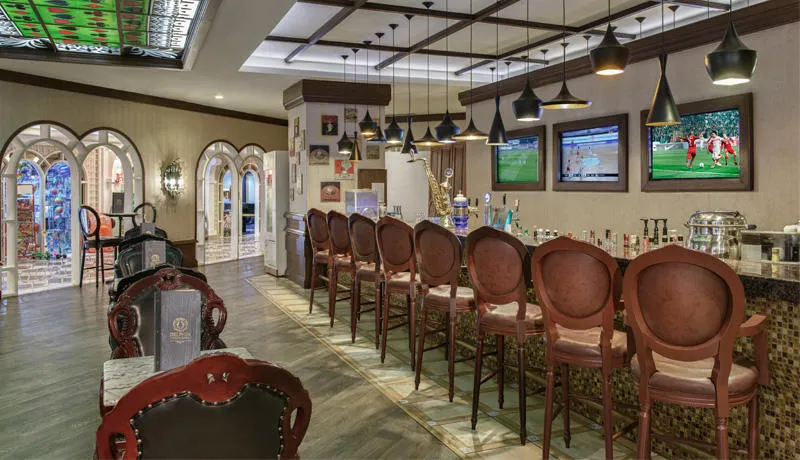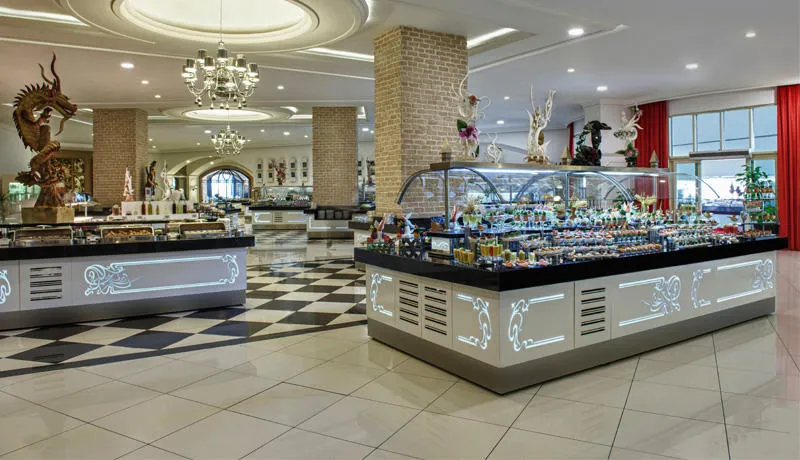 Delphin Imperial raspolaže sa čak 8 à la carte restorana, uključujući turski, grčki, riblji, italijanski, kineski, meksički, francuski i japanski – svi dostupni jednom tokom boravka uz prethodnu rezervaciju. Glavni restoran nudi bogat izbor jela na bazi švedskog stola, a tu je i čak 16 barova, od kojih jedan radi 24h dnevno.