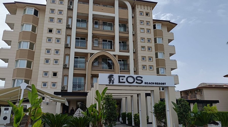 Eos Beach Hotel se nalazi u Alanji, u istočnom delu grada, u blizini gradske peščano-šljunkovite plaže. Hotel je smešten na kratkoj pešačkoj udaljenosti od mora, dok je centar Alanya udaljen oko 2–3 km i lako dostupan lokalnim prevozom ili taksijem. U neposrednoj blizini hotela nalaze se prodavnice, restorani i šetalište uz obalu, dok je aerodrom Gazipaša–Alanja udaljen približno 38 km.