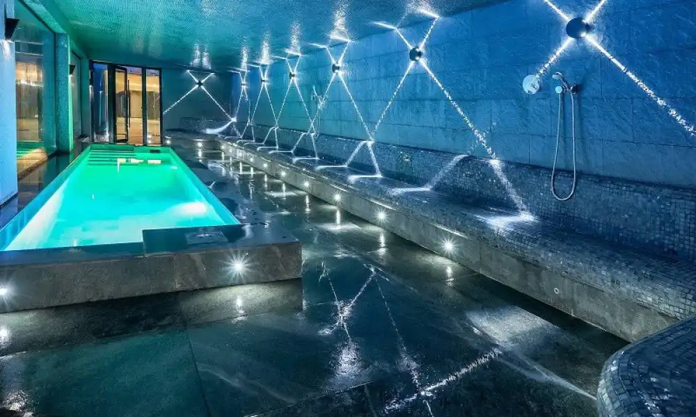 Opis hotela i hotelski sadržaj: Recepcija, lobi, „all day“ restoran, a-la carte restoran „5 element“, „cake & art“ restoran, lobi bar, lounge & wiskey bar, bar pored bazena, vitaminski bar, Welness & Spa centar – zatvoreni bazen sa termalnom mineralnom vodom i tempraturom od 38 stepeni, spoljni bazen sa toplom mineralnom vodom i temperaturom vode od 38 stepeni, lakonijum, herbal sauna, finska sauna, aroma sauna, aroma parno kupatilo, parno kupatilo sa manjim bazenom, igraonica za decu (10-22h) sa animatorom, konferencijska sala, parking.