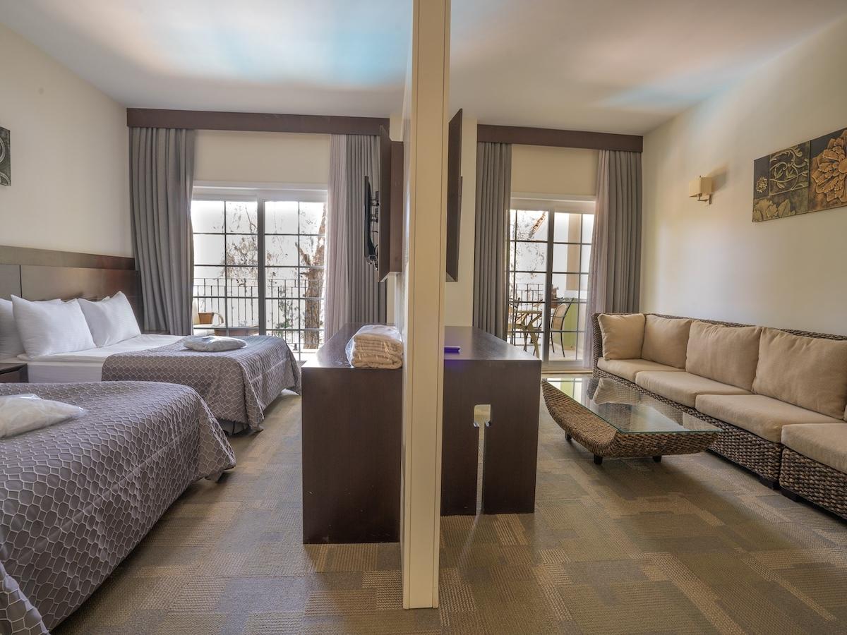 Raspodelu soba u hotelu vrši recepcija po dolasku. Agencija 1 A Travel proslediće Vaše zahteve i želje, ali nije u mogućnosti da garantuje za iste (spratnost, pogled, tip ležaja, tačno određena lokacija u okviru hotelskog kompleksa i slično, udaljenost od plaže, restorana itd., ukoliko u ponudi nije tačno i konkretno istaknuta vrsta i tip sobe). Slike soba u katalogu i na sajtu su date radi informacije. Većina hotela ima nekoliko vrsta soba, tako da smeštaj u hotelu ne mora biti u sobi sa slike. Smeštaj je u standardnim (dvokrevetnim) sobama, osim ako nije drugačije naglašeno.