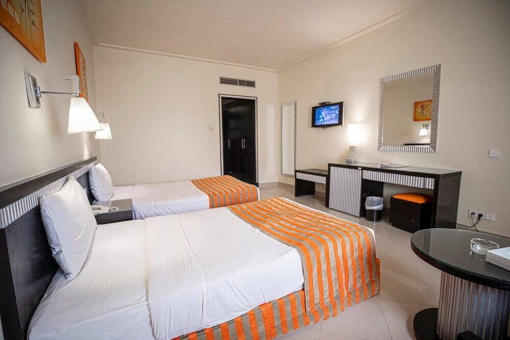 • Raspodelu soba u hotelu vrši recepcija po dolasku. Agencija 1 A Travel proslediće Vaše zahteve i želje, ali nije u mogućnosti da garantuje za iste (spratnost, pogled, tip ležaja, tačno određena lokacija u okviru hotelskog kompleksa i slično, udaljenost od plaže, restorana itd., ukoliko u ponudi nije tačno i konkretno istaknuta vrsta i tip sobe). Slike soba u katalogu i na sajtu su date radi informacije. Većina hotela ima nekoliko vrsta soba, tako da smeštaj u hotelu ne mora biti u sobi sa slike. Smeštaj je u standardnim (dvokrevetnim) sobama, osim ako nije drugačije naglašeno.