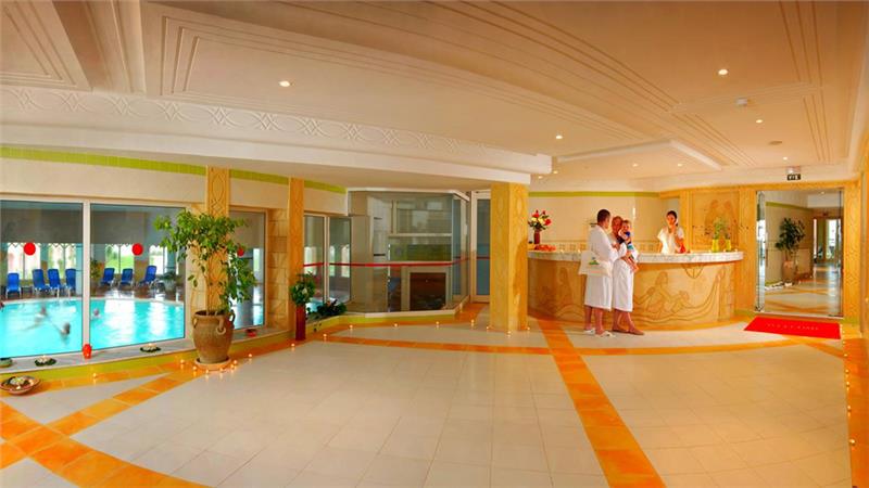 Sadržaj hotela: Hotel ima ukupno 520 soba raspoređenih u dve zgrade sa tri sprata (glavna zgrada i aneks zgrada). Hotel nema lift. Gostima su na raspolaganju tri bazena, od čega jedan unutrašnji, jedan sa toboganima, dva dečija bazena od toga jedan sa toboganom, dva restorana, dva bara, diskoteka, besplatan wi-fi internet dostupan na recepciji, animacija, aerobik, sportski teren za mali fudbal, odbojku, košarku i rukomet, tenis, boćanje, luk i strela, stoni tenis, pikado. Sef na recepciji uz doplatu.