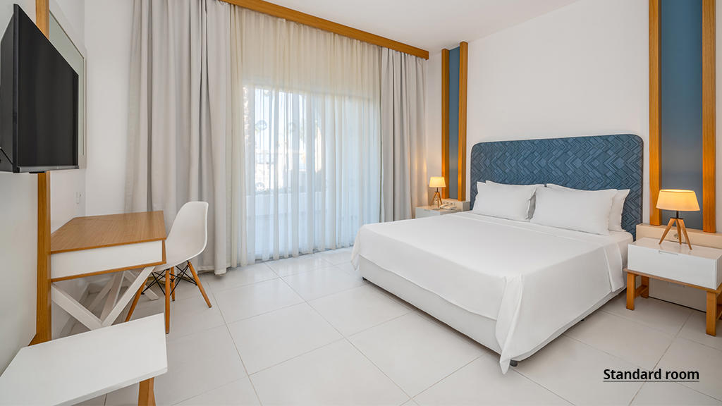 Sobe: Hotel čine dvospratna glavna i aneks zgrada i raspolaže sa ukupno 329 soba. Standardne sobe bez balkona su površine 24 m² i namenjene su za 2+1 osobu (francuski ležaj ili dva odvojena kreveta, za dodatnu osobu/dete dodatni pomoćni ležaj). Standardne sobe u aneks zgradi su površine 20-24 m², maksimalnog kapaciteta 2+1 (francuski ležaj ili dva odvojena kreveta, za dodatnu osobu/dete dodatni pomoćni ležaj).