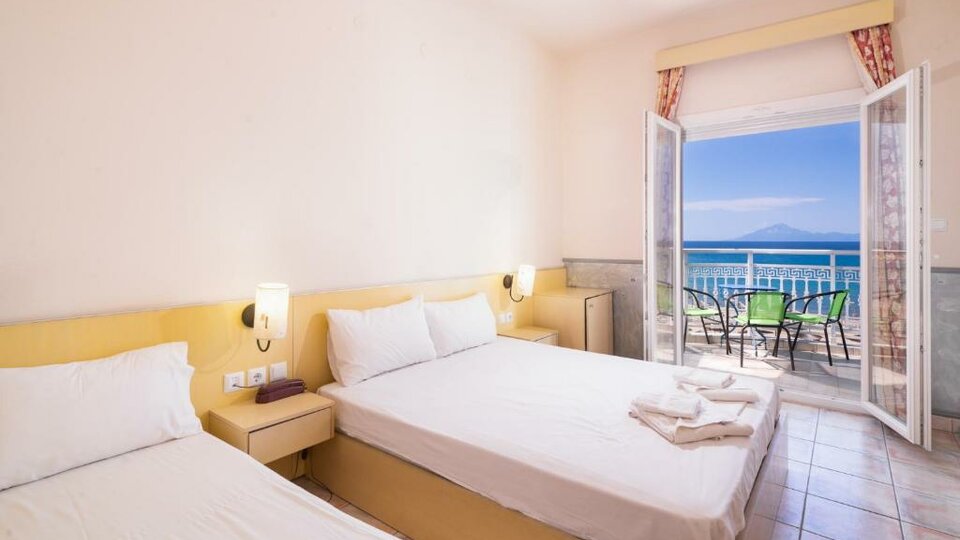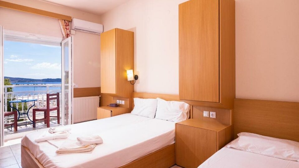Lokacija hotela: Hotel Ralitsa se nalazi u mestu Limenaria, sa pogledom na zaliv Limenaria. Od plaže je udaljen 10 metara, a od centra mesta oko 100 metara.