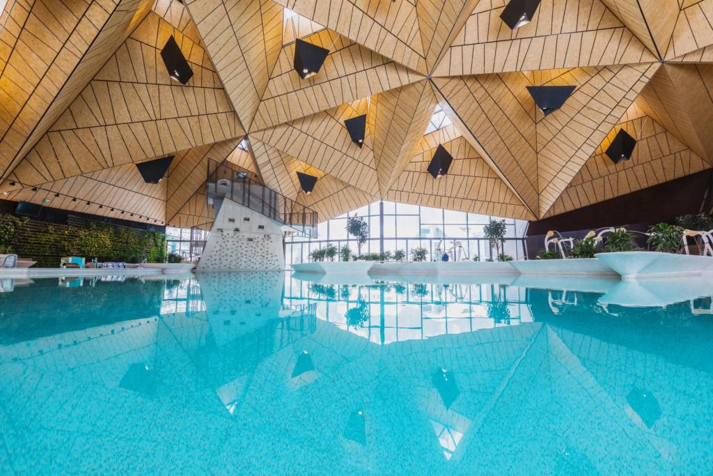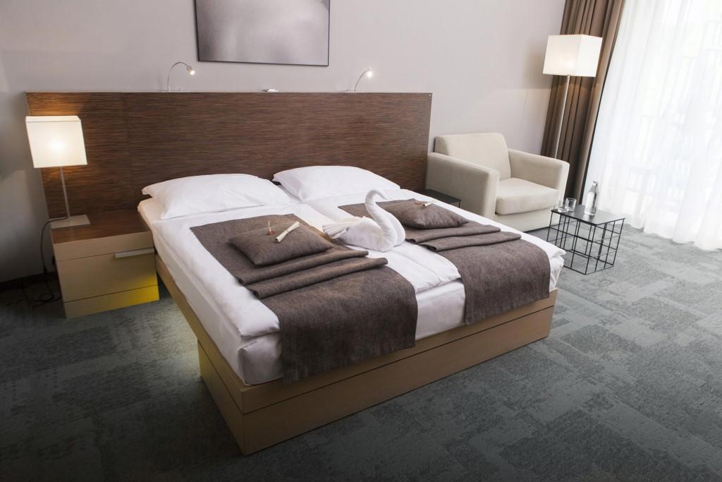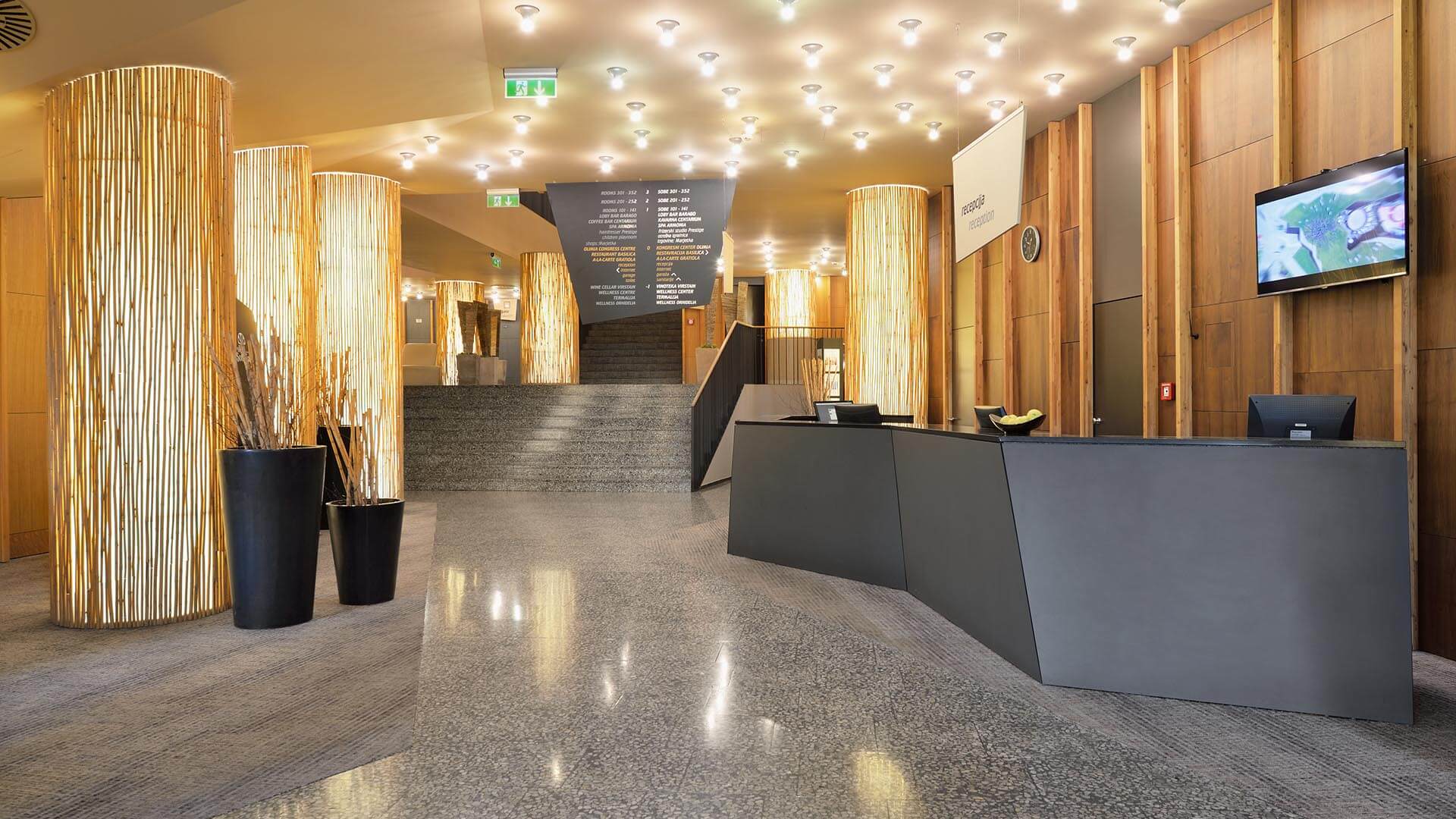 Hotelski sadržaj: Recepcija, restoran, a la cart restoran, bar, vinoteka, klub, kongresni centar, besplatni wi-fi internet, dečiji mini klub, room servis, parking, garaža. U sastavu hotela je wellness centar Armonia, a hotel je podzemnim hodnikom povezan sa wellness centrima Termalija, Orhidelija i Family Fun vodenim svetom.