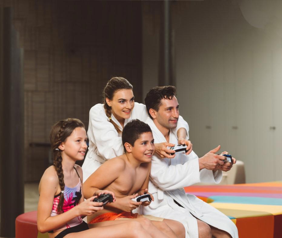 Porodični odmor postaje pravi odmor! Svaki član porodice može da pronađe kutak za sebe, od zabave do popodnevnog mira i opuštanja. Zanimljivi događaji za decu svih uzrasta i opuštajuće aktivnosti za roditelje nalaze se u ovom delu Termi Olimia. Brojni sadržaji ovom spa centra ispuniće očekivanja svih članova porodice. Baby fun deo je plaža za mališane gde je prvo iskustvo sa vodom najdragocenije. Nakon vodene zabave prija odmor koji je još slađi u zagljaju člana porodice. Unutrašnji bazen sa vodenim atrakcijama je monumentalna vodena oaza isprepletana aktivnostima za najmlađe. Stena za penjanje sa slapovima iznad bazena – Fun&Splash tobogan – odličan je za one koji žele da se popnu na vrh sveta. U bioskopu 7D možete očekivati neočekivano. Ovaj multidimenzionalni doživljaj prilagođen je različitim uzrastima. Za nove generacije željne digitalne zabave tu je igranica sa konzolama i interaktivnim tlom.