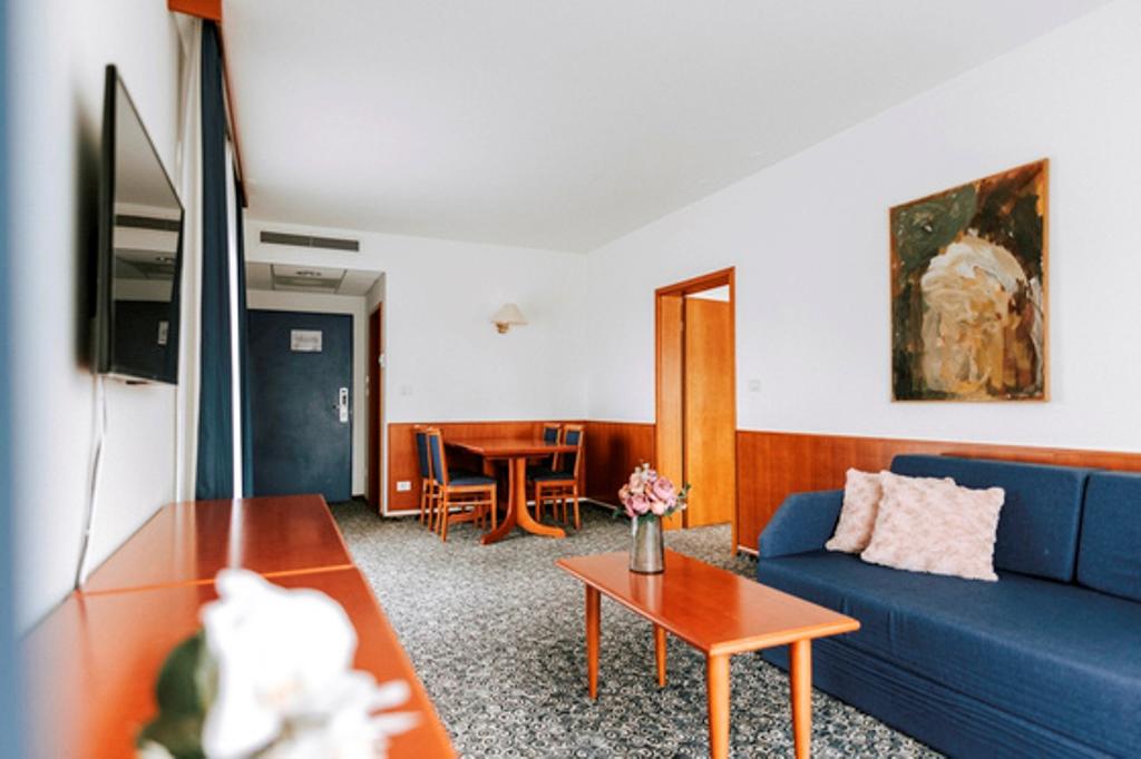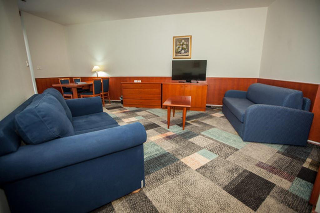 Sobe: Superior sobe **** nalaze se u glavnoj zgradi, ima ih 107, od čega je 13 soba s terasom u prizemlju, sve ostale su sa balkonom. U sve sobe moguće je smestiti pomoćni krevet ili dečiji krevetić uz doplatu (na insistiranje putnika u sobu se može dodati 2 pomoćna ležaja, ali onda u sobi ima malo slobodnog prostora). Sobe su površine 30 m2 i sadrže: balkonom ili terasu ako su u prizemlju, francuski krevet ili odvojene krevete, klimu, kupatilo sa kadom, kupatilo, fen za kosu, mini bar, sef, telefon, SAT TV. Standard sobe *** nalaze se u depadansi (rezidenciji) koja je toplim hodnikom povezana sa recepcijom u glavnoj zgradi, kao sa Zimskom termalnom rivijerom. Sobe u depadansi su lošijeg kvaliteta. Ima 24 sobe, neke su sa balkonom i imaju mogućnost smeštaja pomoćnog kreveta (na insistiranje putnika u sobu se može dodati 2 pomoćna ležaja, ali onda u sobi ima malo slobodnog prostora). U njima, odmor mogu provesti i gosti koji sa sobom vode kućnog ljubimca. Sobe su površine 25 m2 i sadrže: francuski krevet, kupatilo sa tušem ili kadom, fen za kosu, mini bar, sef, telefon, SAT TV. Suite (površina 48 – 55 m2 ): soba sa balkonom (2 suite imaju odvojen dnevni i spavaći prostor, 2 suite u jednom prostoru imaju zajednički dnevni i spavaći prostor), osnovni francuski krevet, mogućnost dva pomoćna kreveta (dvosed), mogućnost smeštaja dečijeg krevetića uz doplatu, klima, kupatilo sa kadom, fen za kosu, mini bar, sef, telefon, SAT TV. Apartman (površina 57 – 67 m2 ): soba sa balkonom (2 apartmana imaju odvojen dnevni i spavaći prostor, 2 apartmana u jednom prostoru imaju zajednički dnevni i spavaći prostor, francuski krevet, mogućnost dva pomoćna kreveta (dvosed), mogućnost smeštaja dečijeg krevetića uz doplatu, klima, kupatilo s kadom, dodatni toalet, fen za kosu, mini bar, sef, telefon, SAT TV.