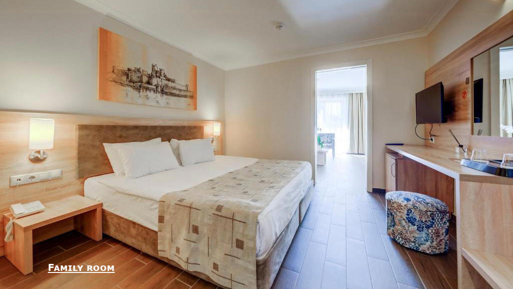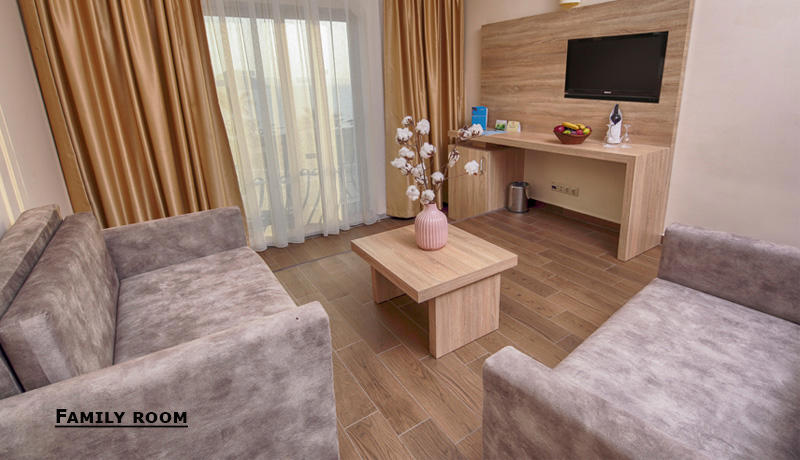 • Porodične sobe (Family Main building) – površine 38 m², imaju kapacitet za najviše 4 osobe (jedna soba ima francuski ležaj ili dva odvojena ležaja, dok druga soba ima francuski ležaj ili dva odvojena ležaja/ili sofu na razvlačenje).