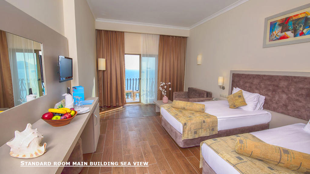 • Standardne sobe (Main building land/sea view) – površine 29-33 m², imaju kapacitet za najviše 3 osobe (francuski ležaj ili dva odvojena kreveta, za dodatnu osobu/dete dodatni pomoćni ležaj). Mogu imati pogled ma kopno ili na more.