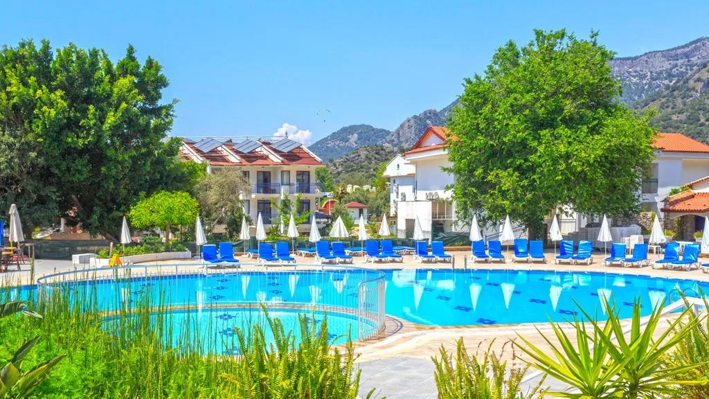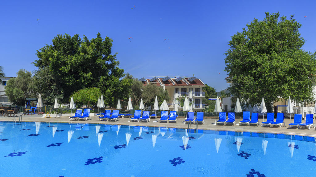 Lokacija: Hotel je udaljen 60 km od aerodroma u Dalamanu, a 14 km od centra Fetija. Izgrađen 1986. godine na izuzetnoj lokaciji, u podnožju planine Baba na samoj obali mora, sa spektakularnim pogledom na peščanu plažu i uvalu u svetski poznatoj “Plavoj laguni’’ mesta Oludeniz. Poslednji put je renoviran 2020. godine i zauzima površinu od 3.000 m².
