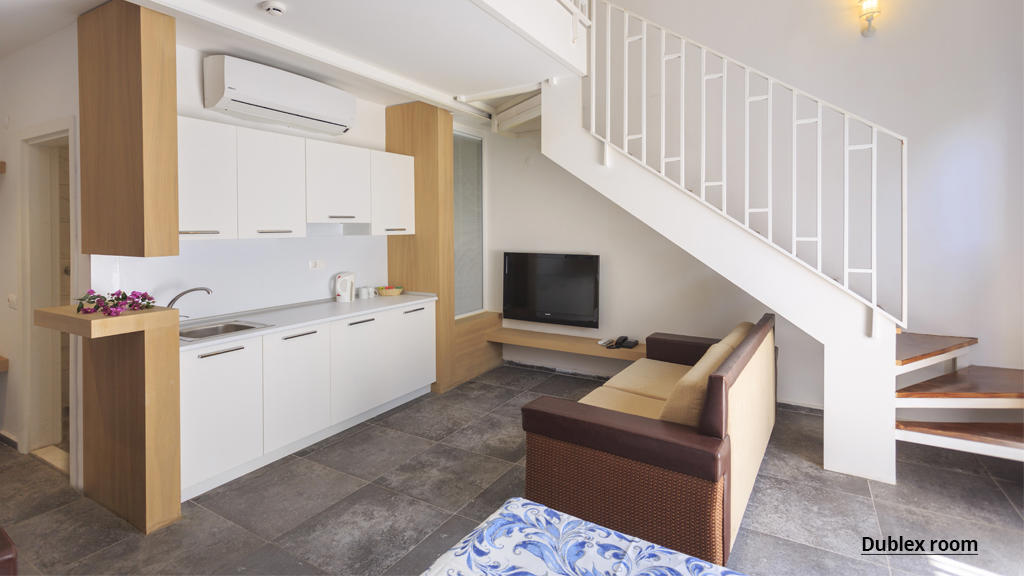 •Deblex sobe (Duplex Room) – površine 40m2, sobe imaju sprat iznad, gde se nalazi jedan francuski ležaj, dok je se u prizemlju nalaze dva odvojena kreveta i mala kuhinja. Poseduju kapacitet za najviše 6 osoba (4+2 – jedna soba ima francuski ležaj ili dva odvojena ležaja, dok druga soba ima francuski ležaj ili dva odvojena ležaja/ili sofa na razvlačenje).