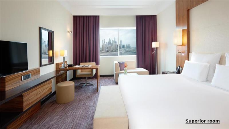 Sobe: Hotel ima 278 elegantnih soba i 76 luksuznih apartmana. Superior soba veličine 35m2, namenjena za smeštaj max dve odrasle osobe I 1 dete do 11,99 god, dva standardna kreveta ili francuski krevet, postoji mogučnost ubacivanja pomoćnog ležaja za dete. Deluxe soba veličine 40 m2, namenjena za smeštaj max dve odrasle osobe I 1 dete do 11,99 god, francuski krevet, postoji mogučnost ubacivanja pomoćnog ležaja za dete.